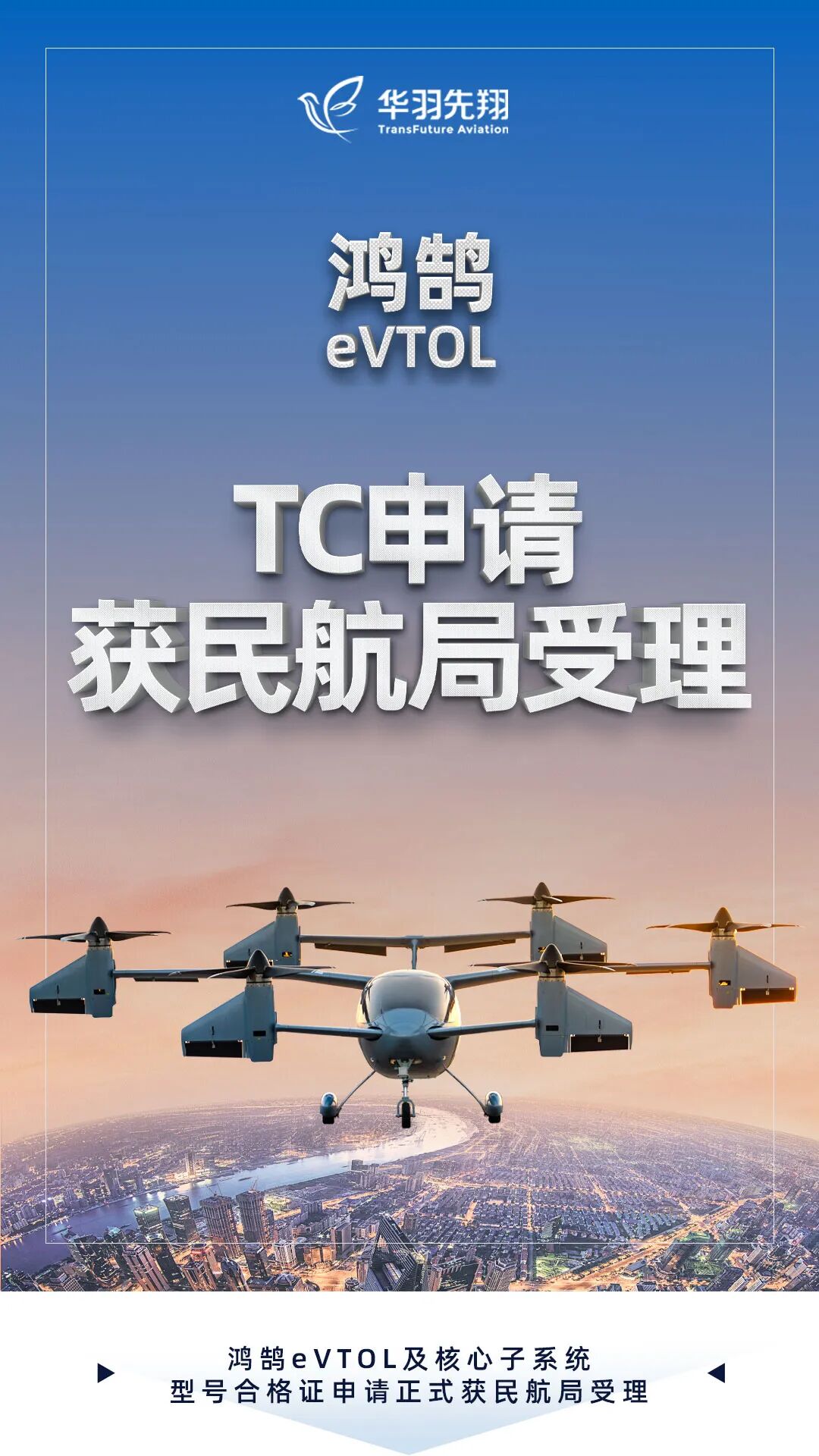 国内首例!华羽先翔鸿鹄eVTOL及自研核心子系统同步TC申请获受理