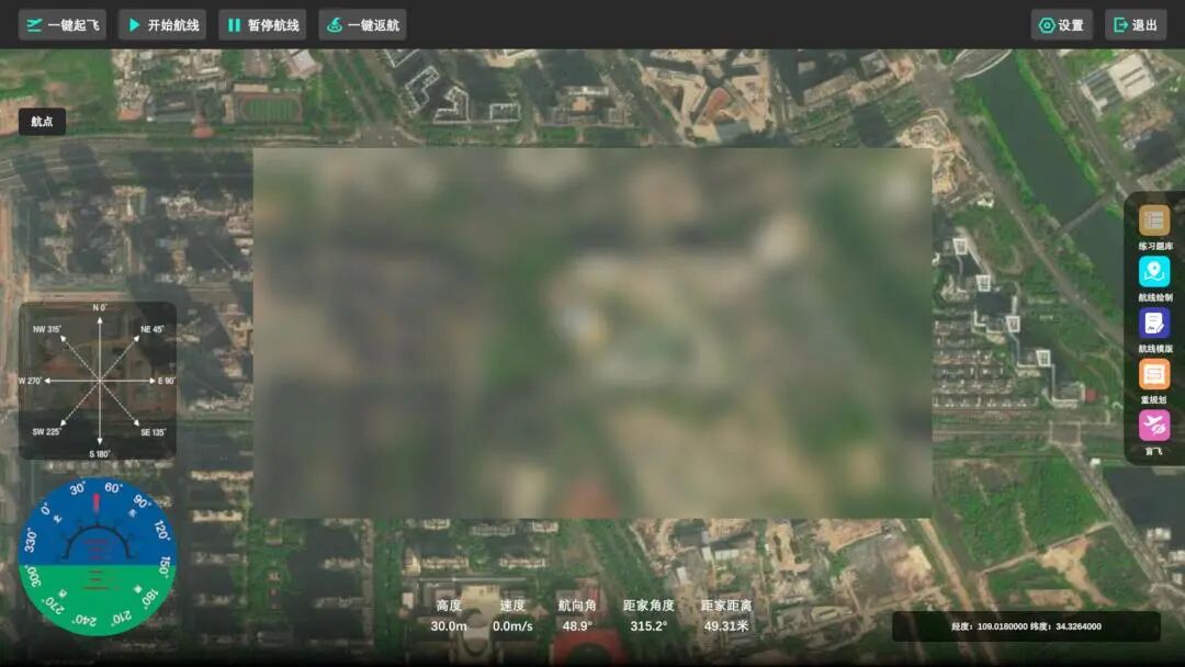 盲飞训练中,设定目标点后系统遮罩,学员借助仪表盘参数将无人机飞回起飞点,强化空间感知与操作技巧。