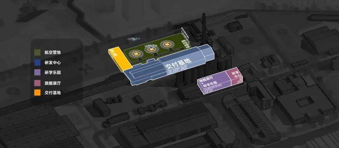 研发中心聚焦eVTOL飞控系统、动力系统等核心技术;旗舰展厅让市民近距离体验低空科技;交付基地为规模化量产奠基;研学乐园培育产业人才;航空营地则成为网络化运营的节点样板。