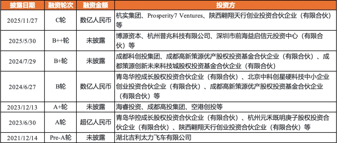 融资情况方面,小鹏汇天融资历程如下表所示: