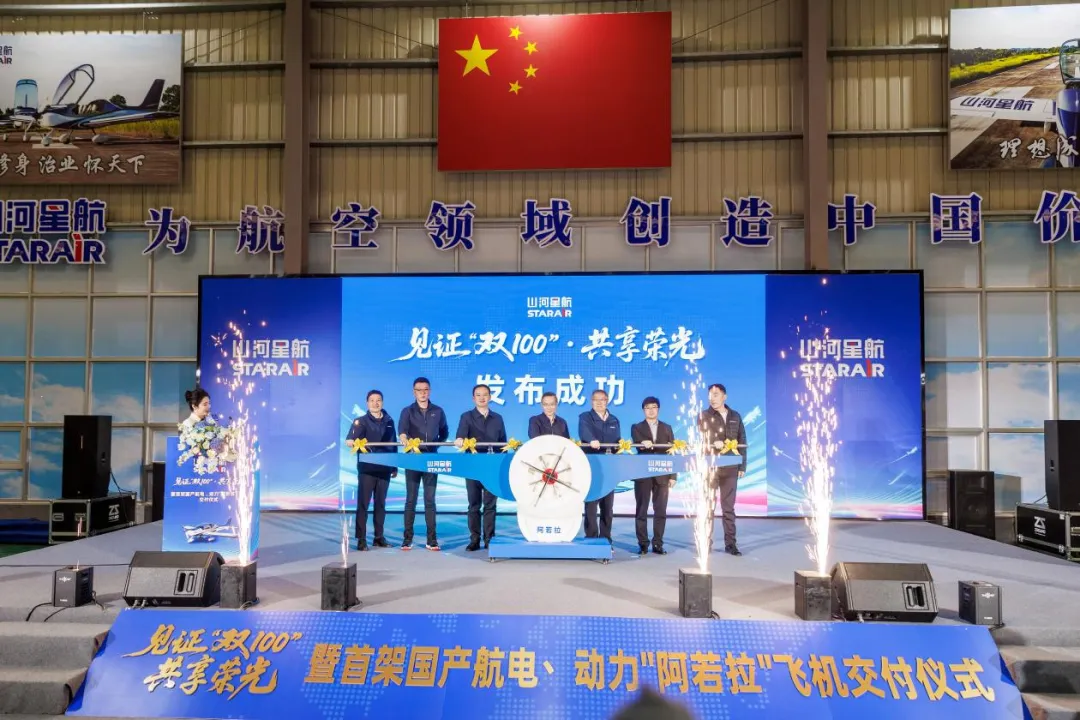1月16日,山河星航在湖南株洲举行“双百”发布暨首架国产航电、动力“阿若拉”飞机交付仪式