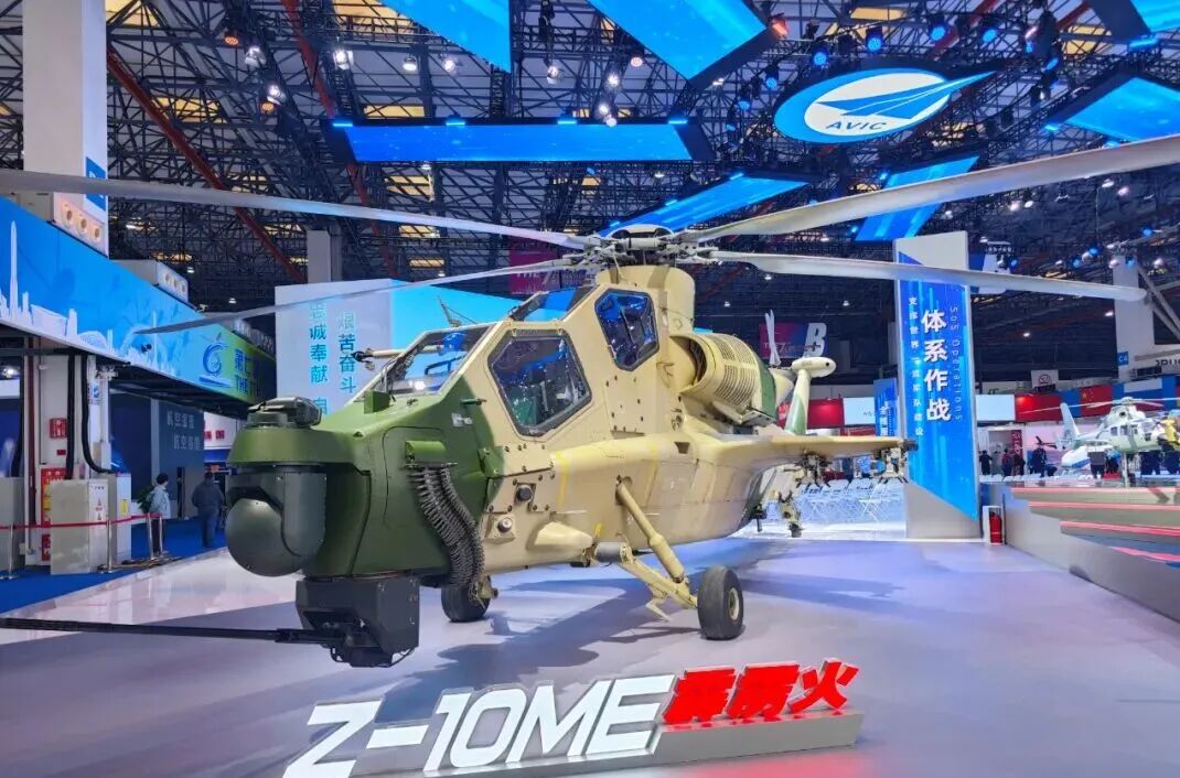 直-10ME武装直升机是一款全新中型多用途攻击直升机,具有良好的飞行性能和超低空机动性能,打击火力强,战场生存性高,人机工效好,可靠性、维修性高,保障资源完整先进,可在全天候、复杂的战场环境和野外保障条件下遂行多种作战任务。