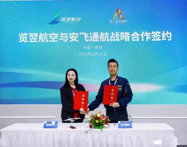 2025年11月28日,2025亚洲通用航空展(珠海)开展翌日,览翌航空与四川安飞通用航空有限公司、上海闳鉴通用航空有限公司、广电计量检测集团股份有限公司三家生态伙伴,分别签署了飞机购机及战略合作协议。